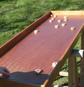 Le Pétankélastique est un jeu de pétanque, avec des palets propulsés sur cible grâce à un élastique.